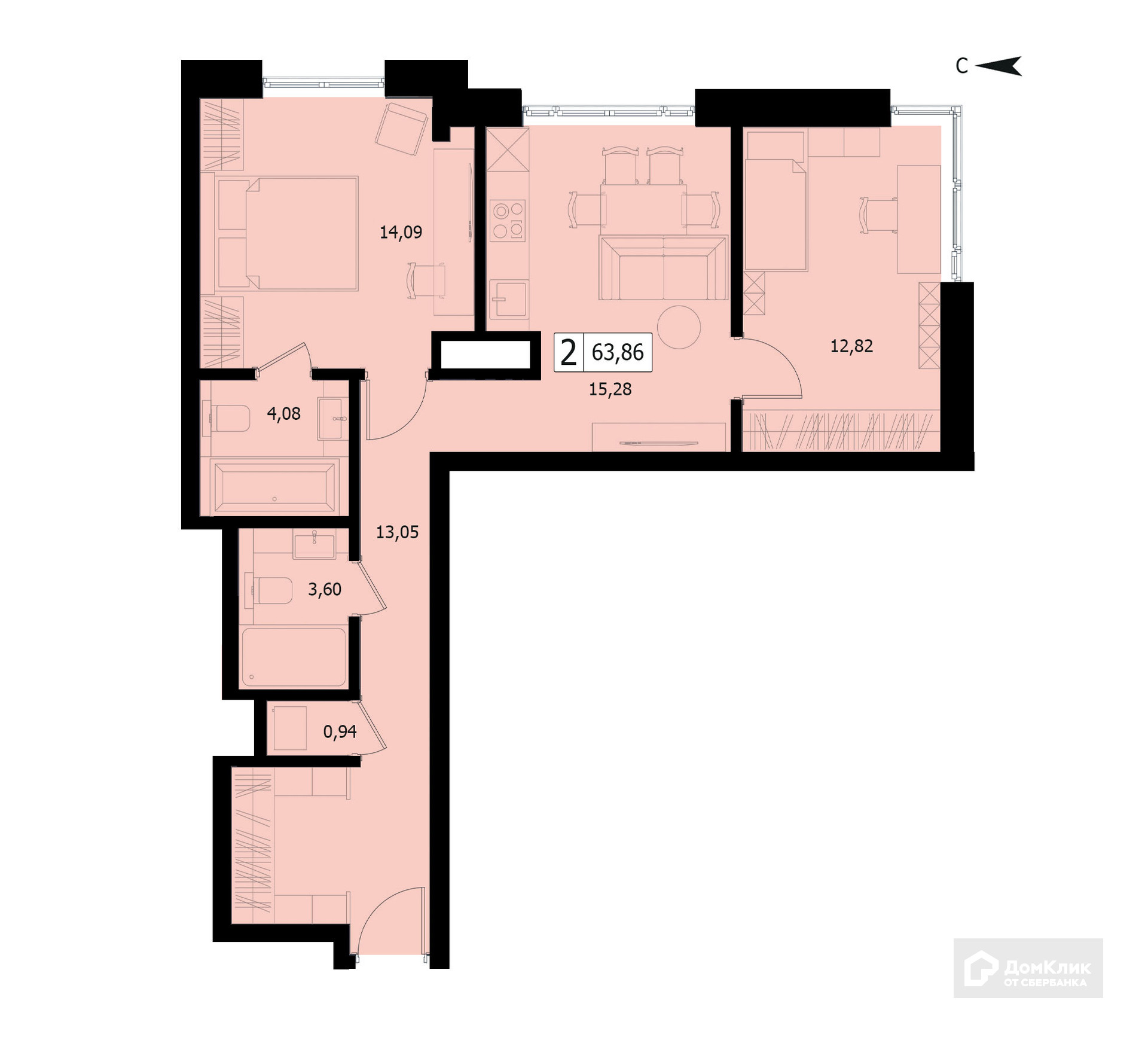 Общая площадь 63.86 м2