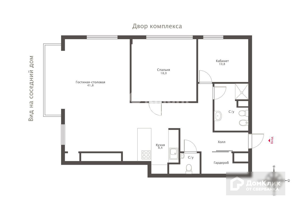 Планировка: гостиная-столовая с зоной кухни, спальня, кабинет.