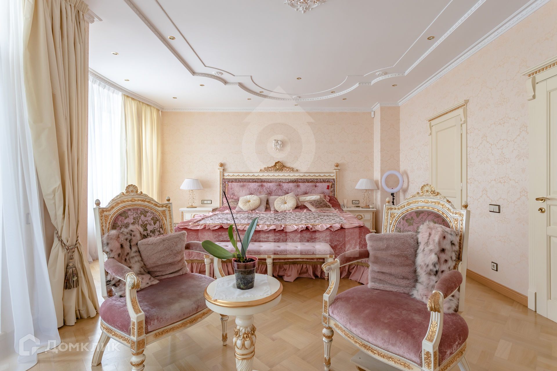 Второй этаж: основная спальная комната 34 кв.м с собственным санузлом (ванна, душ) и выходом на лоджию, кабинет 14 кв.м; потолок 2.9 м.