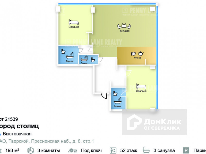 3-комнатная квартира, 193 м2, этаж 52 / 78, на продажу в Москве, Пресненская набережная, 8с1