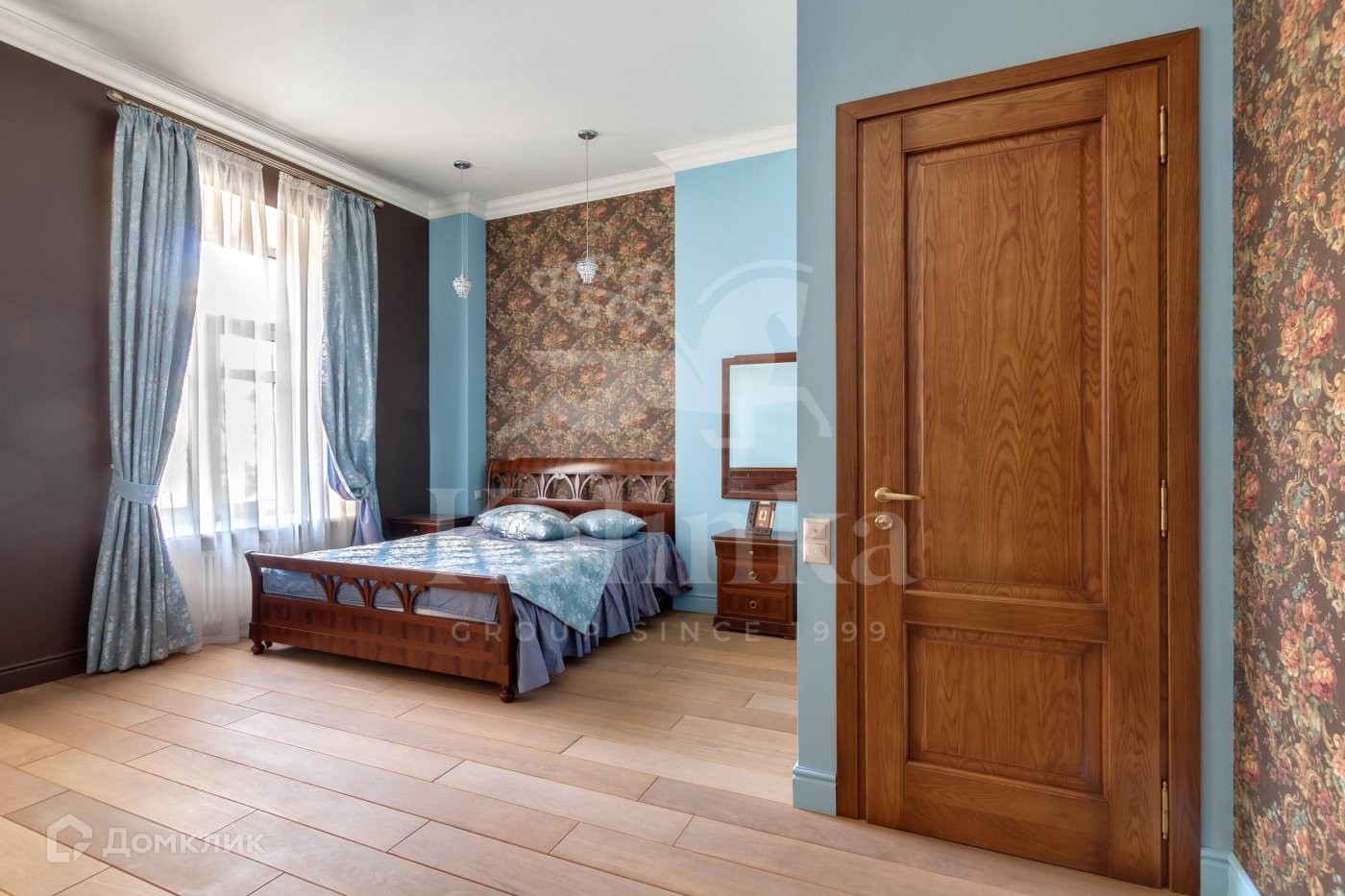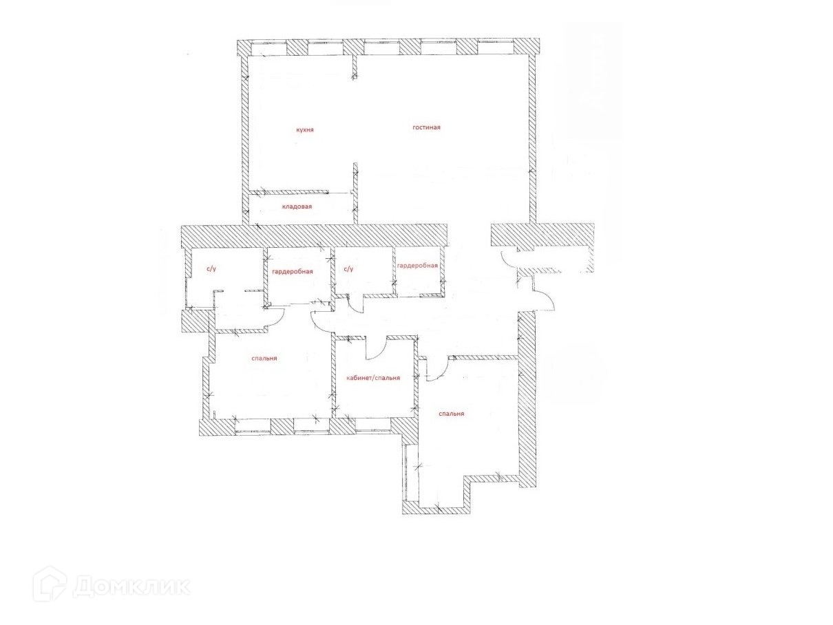 Просторная гостинная, кухня с подсобным помещением, спальня, кабинет, с/у с душевой кабиной, хозяйская спальня со своим с/у (ванна, душевая) и гардеробной комнатой.
