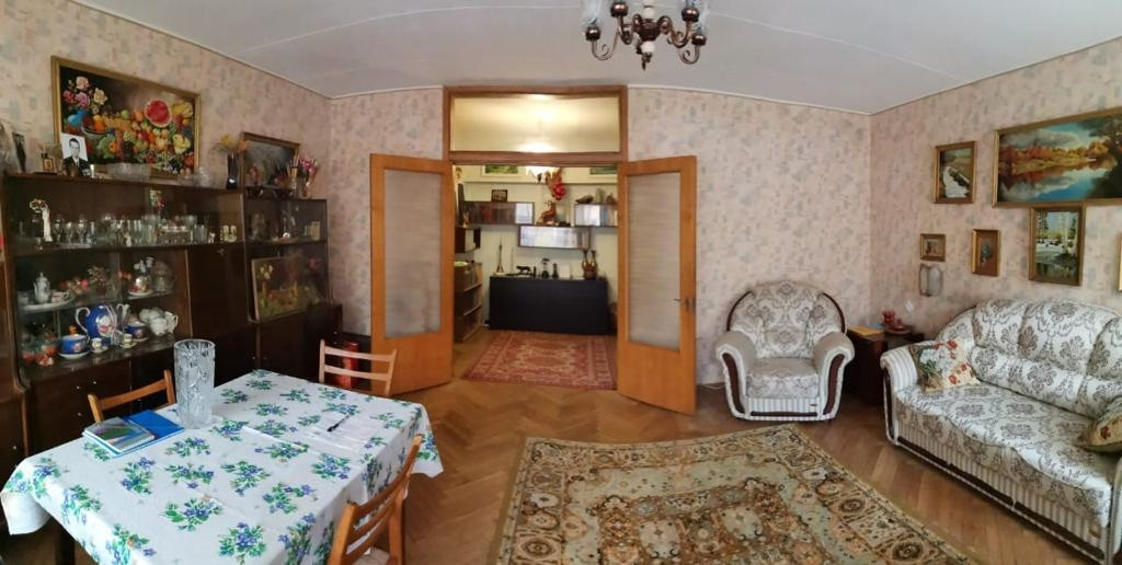 Арбатская. 16- ти этажный кирпичный дом был построен в 1971 году для работников Совета Министров СССР, интеллигентная публика, в доме музей-квартира Мироновых и  Менакера, в доме также проживали народные артисты СССР Николай Крючков и Ангелина Степанова. Закрытый зелёный двор, шлагбаум, консьерж. Удобная планировка квартиры: большая гостиная 22 кв.м. с лоджией 7 кв.м. и прилегающим холлом, две спальни 15 и13 кв.м., кухня 13 кв.м., СУР. Встроенные до потолка шкафы для хранения. Без перепланировок. Квартира с момента постройки дома находится в собственности одной семьи. Свободная продажа, никто не зарегистрирован.