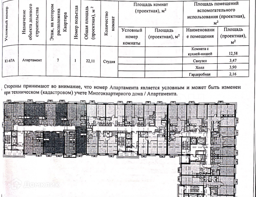ОКНА ВО ДВОР, НАЛИЧИЕ ГАРДЕРОБНОЙ, СТУДИЯ В СЕРЕДИНЕ КОРПУСА, ПРЕДЧИСТОВАЯ ОТДЕЛКА(WHITE BOX). ПЕРЕУСТУПКА ОТ СОБСТВЕННИКА. Продаются апартаменты студийной планировки площадью 22,11 кв.м на 7 этаже 22-х этажного дома в ЖК "Любовь и голуби" от СМУ-6 Инвестиции с отделкой white box. ЖК "Любовь и голуби" располагается в р-не Западное Дегунино в 7-9 мин. пешком от метро "Селигерская". СДАЧА 2022 ГОД. Проект включает три 22-этажных жилых корпуса и объекты инфраструктуры. Первый корпус введен в эксплуатацию. Во второй очереди будет построено ещё 2 корпуса, детский сад, школа, откроется бесплатный коворкинг, где будет вайфай и автоматы с едой и напитками. Придомовая территория приватна и свободна от автомобилей: под каждым домом предусмотрен 2-уровневый паркинг со спуском на лифте. Также во всех домах спроектированы колясочные, кладовые, просторные холлы с авторской отделкой, мягкой мебелью, мойками для лап домашних животных и 2 входами на уровне земли (из внутреннего двора и с улицы). В стилобатной части разместятся: кофейня, супермаркет, магазин фермерских продуктов, салон красоты, прачечная, службы быта, стоматология, частный медцентр, фитнес-центр и студия йоги. Во дворе будут детские игровые площадки, скамейки, беседки и качели для отдыха, воркаут-зона, настольный теннис, а со стороны улицы - поле для командного спорта с трибунами. В шаговой доступности есть ТЦ, кинотеатр, детские сады, школы, поликлиника, места для отдыха и прогулок на свежем воздухе: парк им. Святослава Фёдорова, Дегунинский пруд, Орловский сад. Чуть дальше, примерно в 20 минутах пешком, находятся парки "Ангарские пруды" и "Вагоноремонт". До ТТК можно добраться за 15 мин. на автомобиле, до МКАД - за 10 мин. через Северо-Восточную хорду. Оперативный выход на сделку. Переуступка ДДУ.