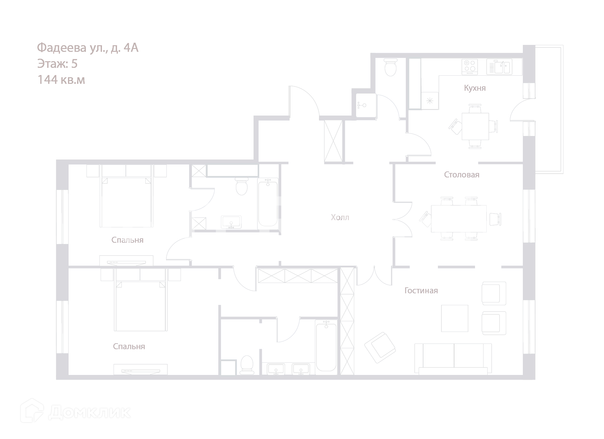 3-комнатная квартира, 144 м2, этаж 5 / 10, на продажу в Москве, улица Фадеева, 4А