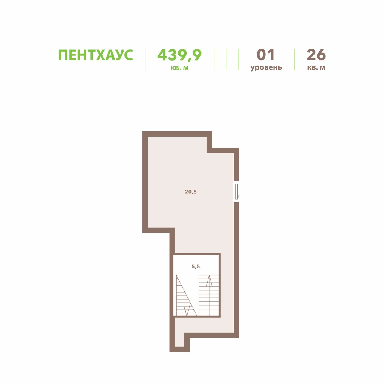 Пентхаус имеет следующие характеристики: 1-й уровень: просторная прихожая, гардеробная, 2-й уровень: гостиная-столовая, кухня, спальня, ещё спальня, кабинет, 2с/у, выход на террасу, 3-й уровень: мастер-спальня с ванной комнатой,ещё три спальни, 2с/у, 2 гардеробные, постирочная, холл.