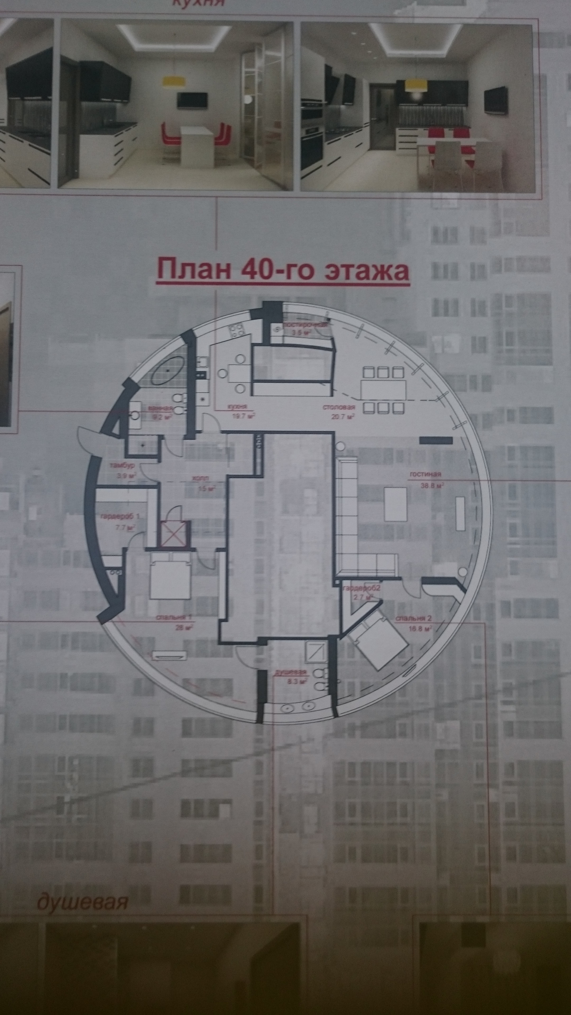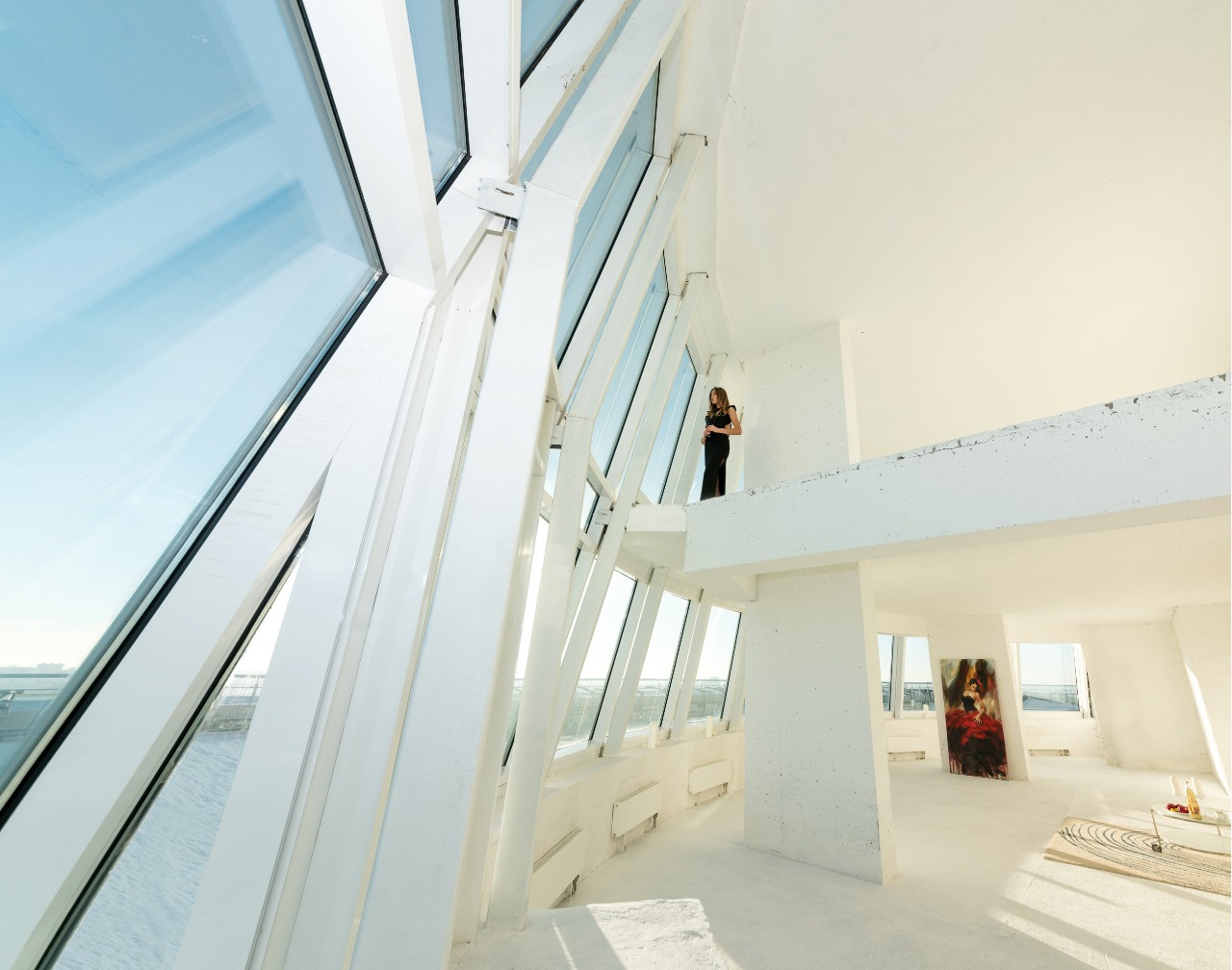 Преимущества пентхауса: панорамное остекление во всех комнатах, наличие просторной террасы, вертолётная площадка, виды на все стороны света - парки, пруд, лес, центр города ; несколько уровней, уникальное расположение.