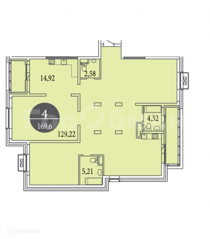 4-комнатная видовая квартира без отделки. Три санузла, панорамные окна, лоджии. Комнаты правильной формы.