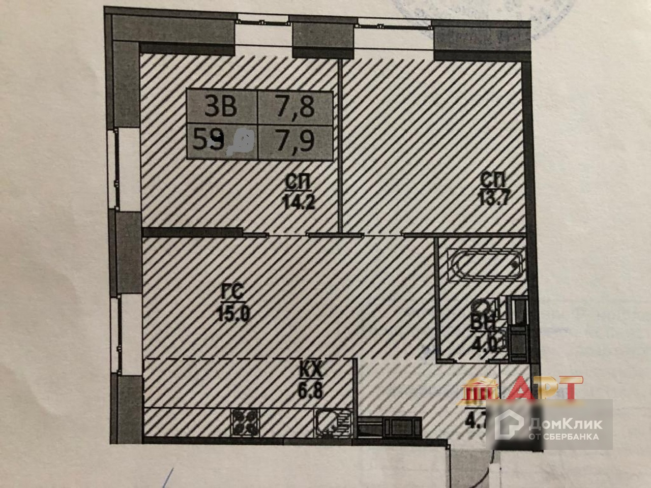 Общая площадь 59 м2