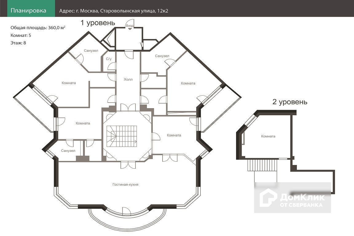 ID 22435 Предлагается 3-уровневый пентхаус в ЖК Волынский. Оригинальная планировка. Есть дымоход под дровяной камин. Терраса 70 м2.