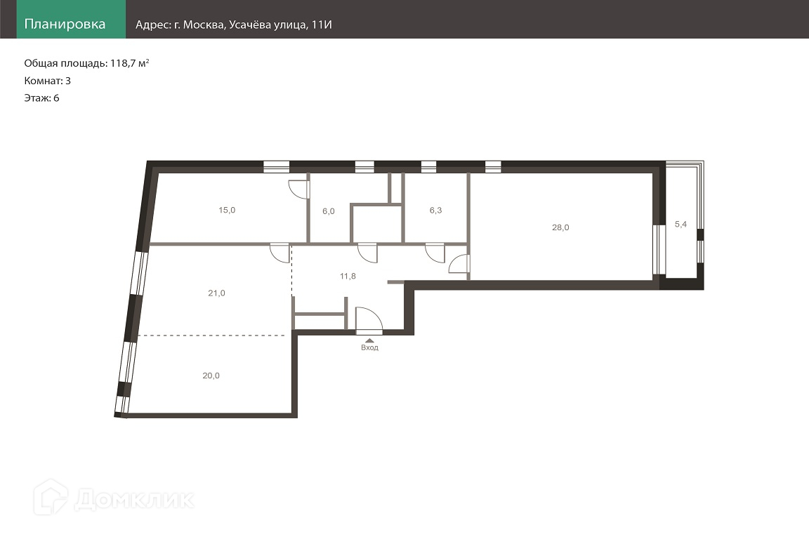 Общая площадь 118.7 м2