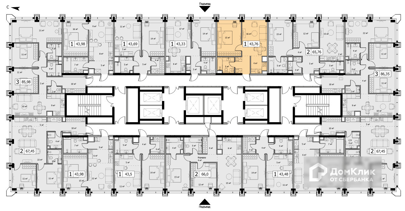 Общая площадь 43.4 м2