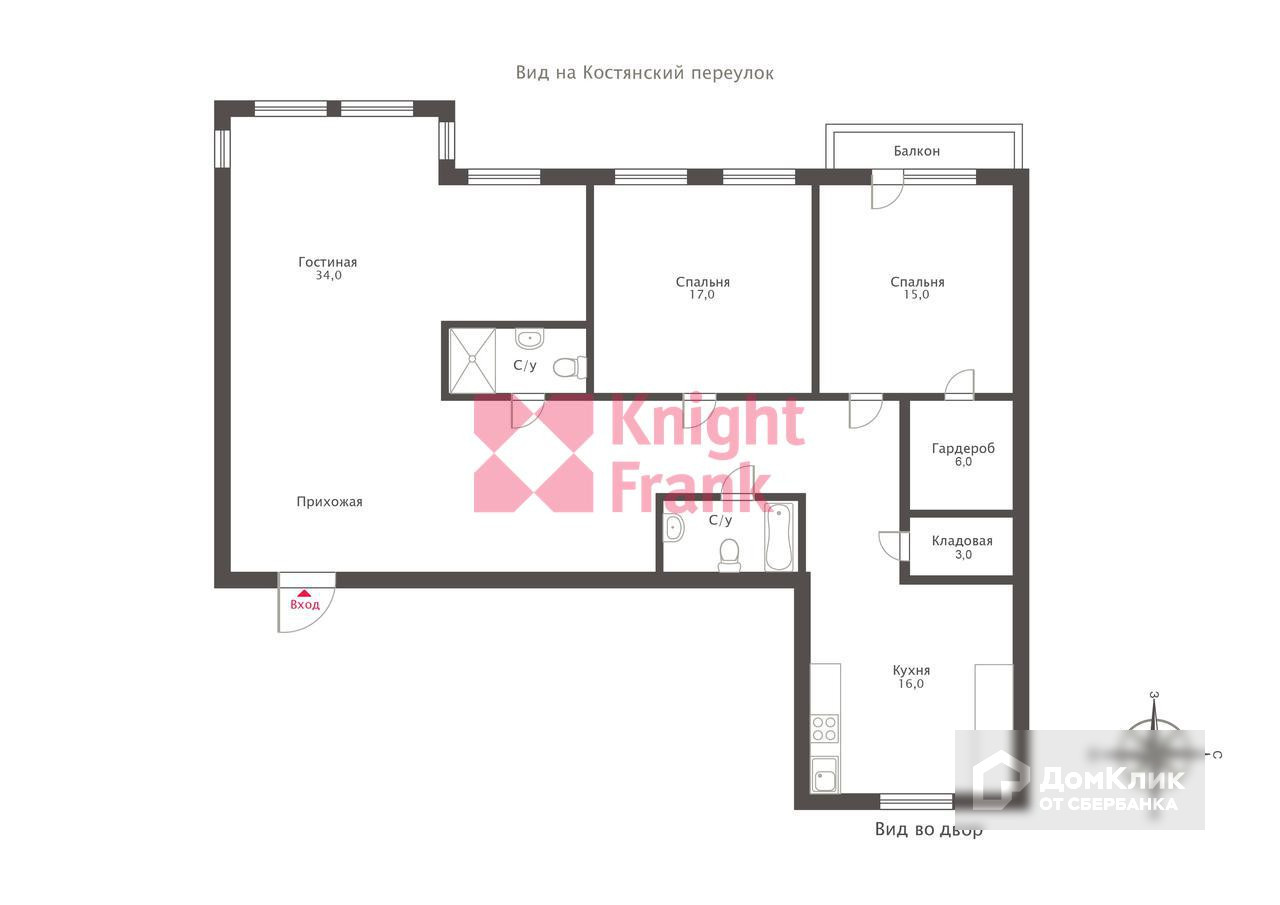 3-комнатная квартира, 123.3 м2, этаж 5 / 6, на продажу в Москве, Костянский переулок, 14