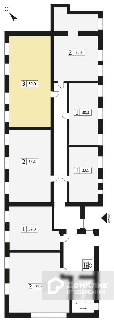 Предлагается 3х - комнатная квартира в новом доме. Общей площадью 79,97 кв. м на 5 этаже,  2 подъезд.  Готова к продаже. Звоните, договоримся о просмотре. Лот № N78089