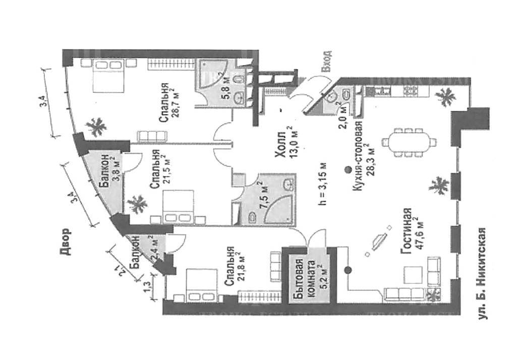 гостиной ориентированы на Большую Никитскую улицу, спальни на внутренний двор.