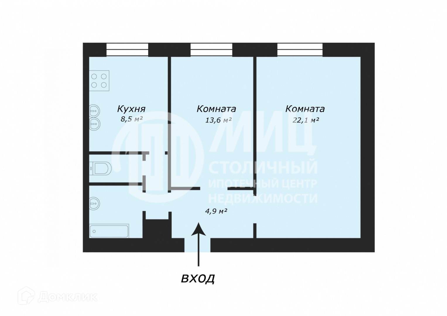Общая площадь 57 м2