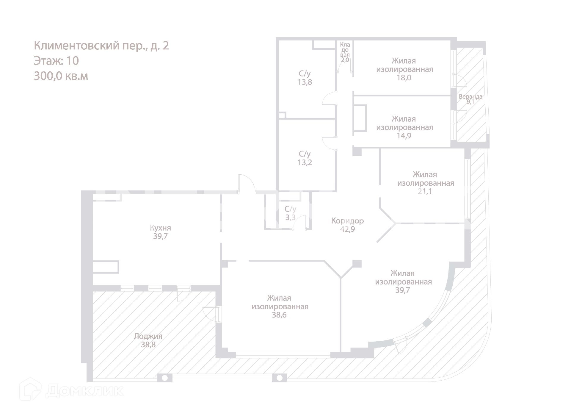 5-комнатная квартира, 300 м2, этаж 10 / 12, на продажу в Москве, Климентовский переулок, 2