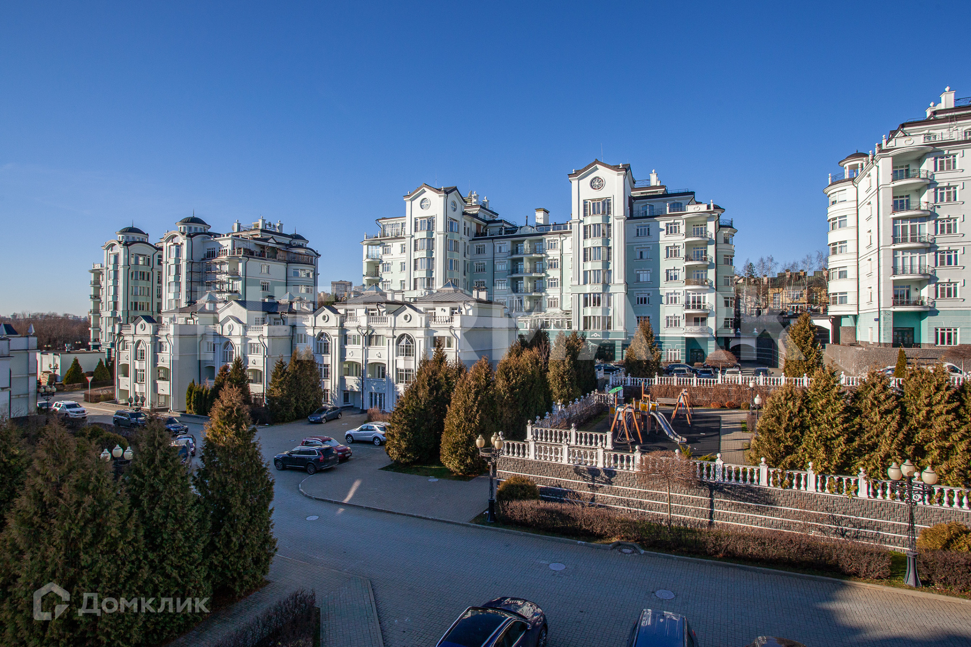 Придомовая территория оснащена всем необходимым – построены детские площадки и собственный детский сад, супермаркет, салон красоты, центр йоги. Во внутреннем дворе оборудована прогулочная зона с бассейнами и фонтанами. Территория комплекса круглосуточно охраняется, ведется видеонаблюдение – Вам будет гарантирована приватность и безопасность.