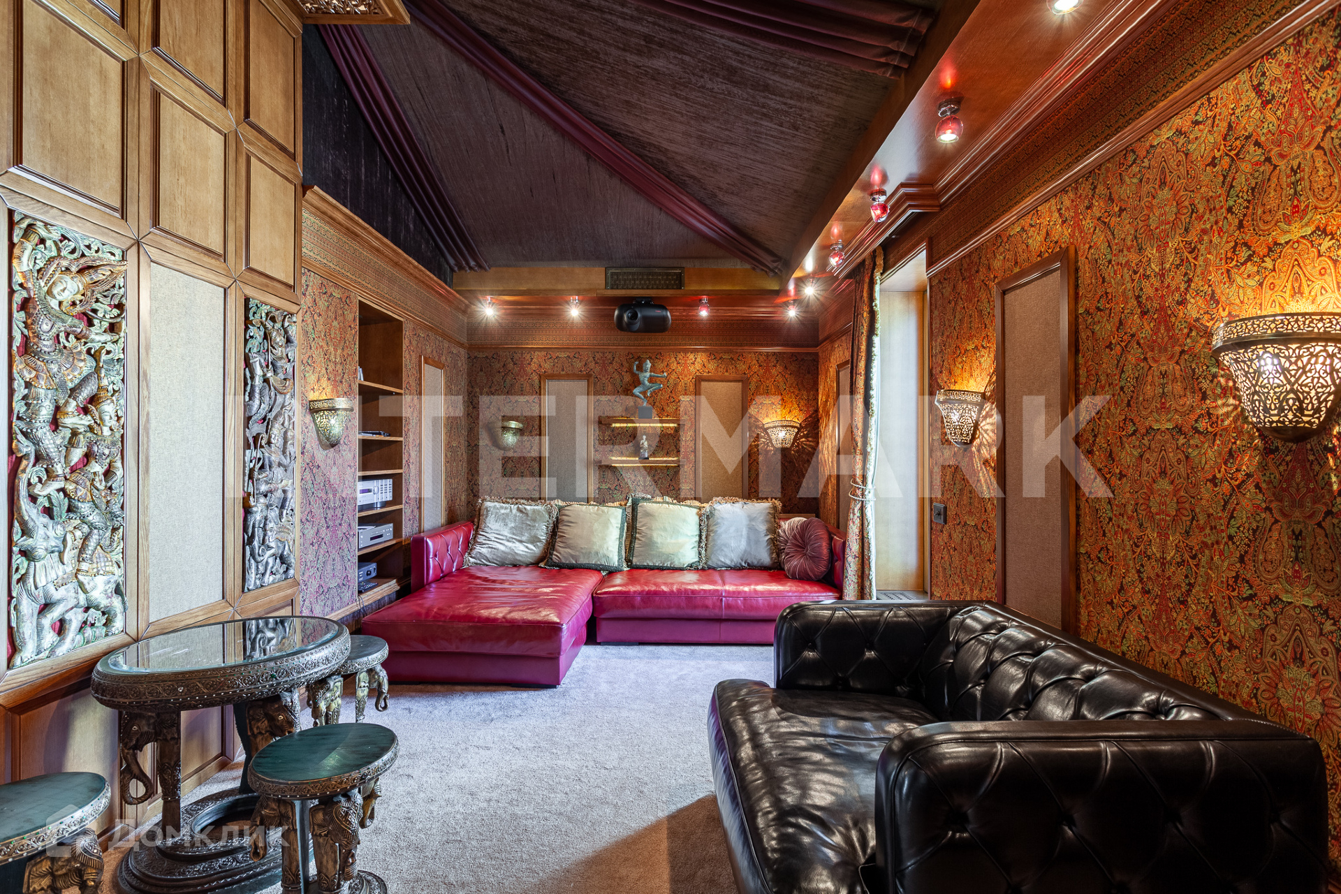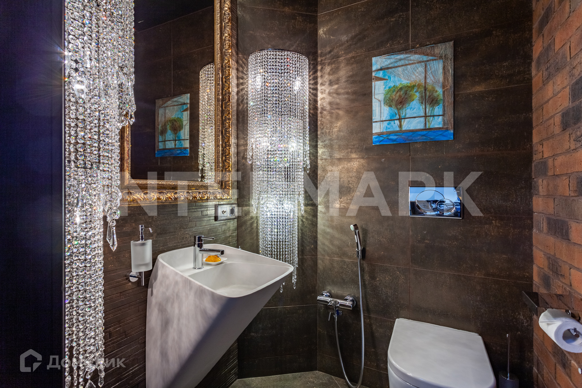 Многочисленные предметы роскоши и изящные элементы декора довершают внутреннее убранство таунхауса. В комнатах установлена мягкая итальянская мебель премиум-класса Privas. Люстры от бренда Mechini также заказаны из Италии.