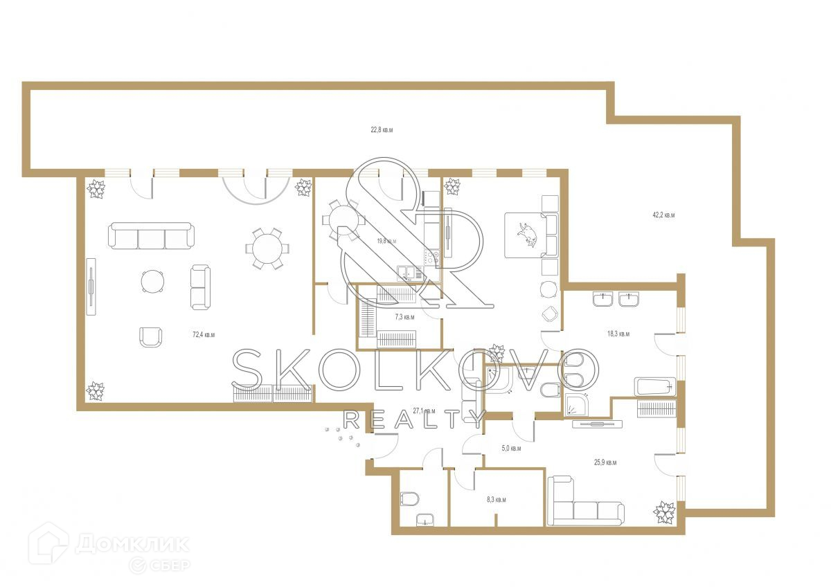 Терраса по периметру квартиры.