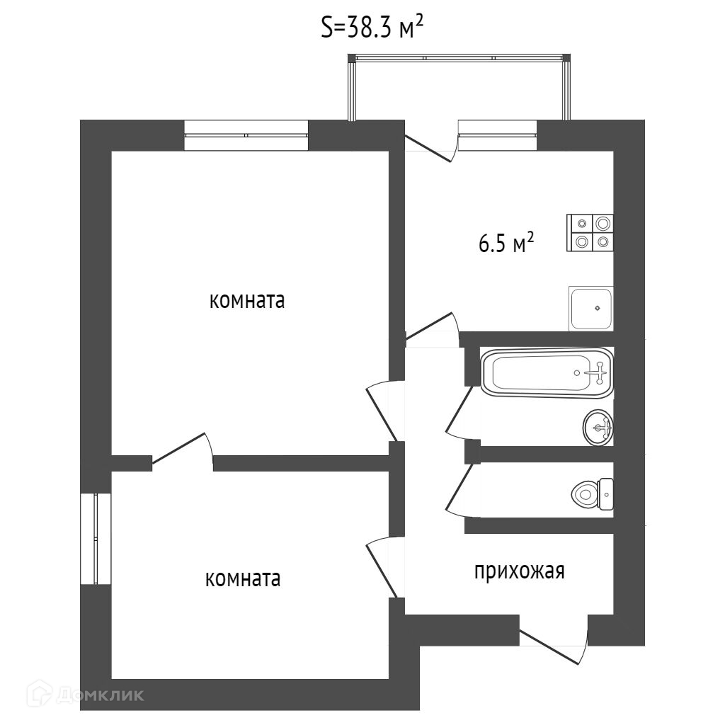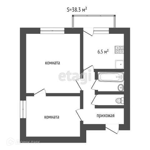 Общая площадь 38.3 м2