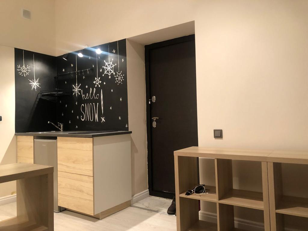 Студию сдаются в евроремонте, с сан.техникой. Фото с мебелью как образец.