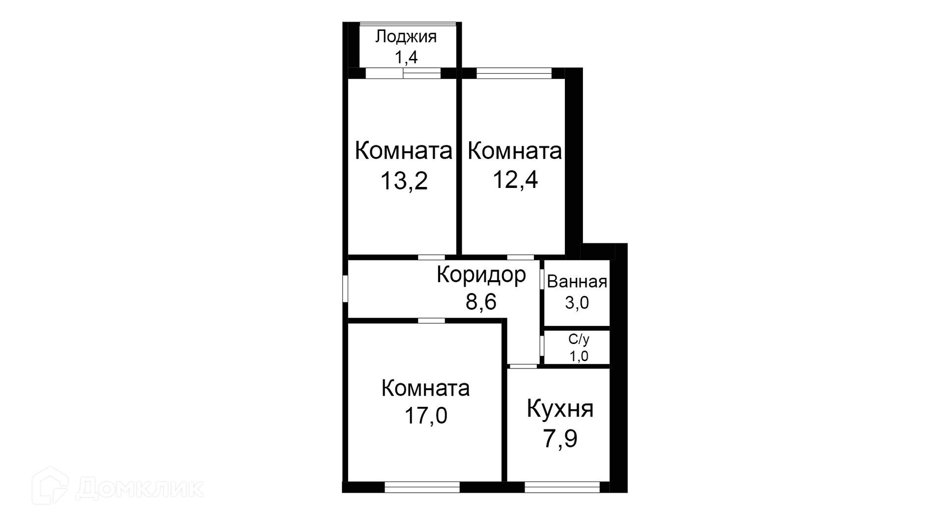 Общая площадь 63.1 м2