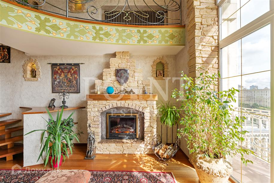 Лот: 38632.   Роскошный двухуровневый пентхаус, площадью 189 кв.м. с собственной террасой в доме на набережной Тараса Шевченко. Функциональная планировка включает: 1-й уровень: просторная гостиная с камином, кабинет/спальня, кухонная зона с обеденной группой, санузел с джакузи; 2-й уровень: две спальни, санузел с душевой кабиной, терраса. В квартире четыре балкона: с двух открываются потрясающие виды на Москву-реку, посольство Англии и МИД, деловой центр Москва-Сити и гостиницу Украина. Высота потолка в гостиной 6 метров, окна около 5 метров. Предложение напрямую от собственника.