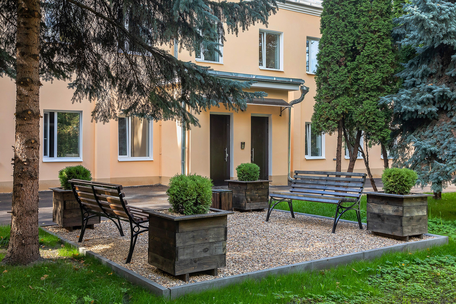 Это полностью реконструированное здание 1937 года, полностью сделан ремонт внутри дома, облагорожена внутренняя территория ЖК.