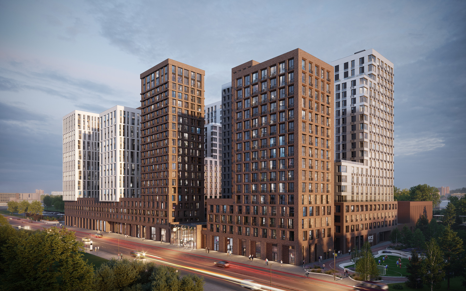 Жилая часть состоит из 7-и домов, высота зданий N’ICE LOFT варьируется от 4 до 21 этажей. Каждое строение получило свой индивидуальный облик.