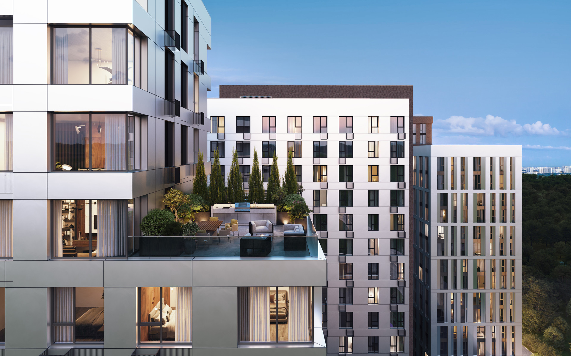 Здесь предлагаются апартаменты на любой вкус — от студий и вариантов с изолированными комнатами до полноценных 3-комнатных.