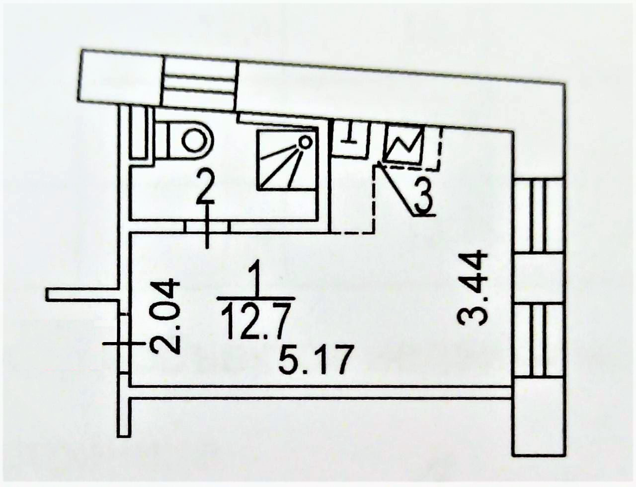 1-комнатная квартира, 17.4 м2, этаж 3 / 4, на продажу в Москве, Балакиревский переулок, 23