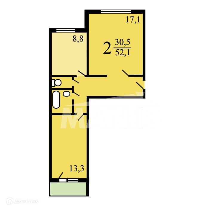 Жилая площадь 30.3 м2