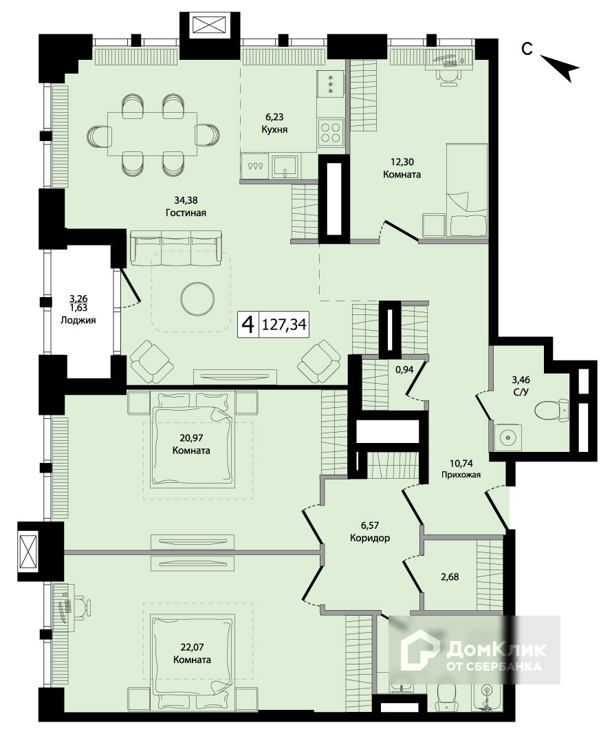 Общая площадь 127.3 м2