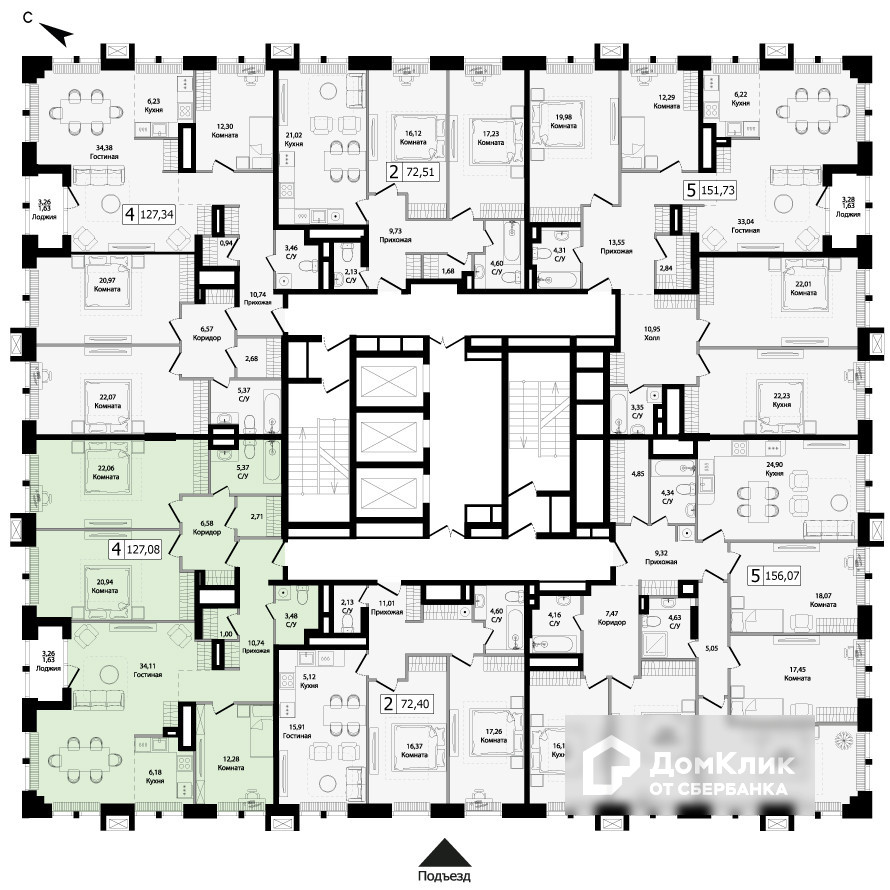 Общая площадь 127.1 м2
