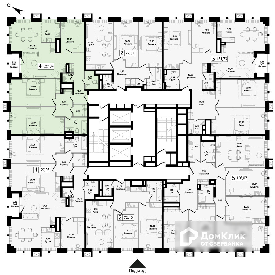 Общая площадь 127.3 м2