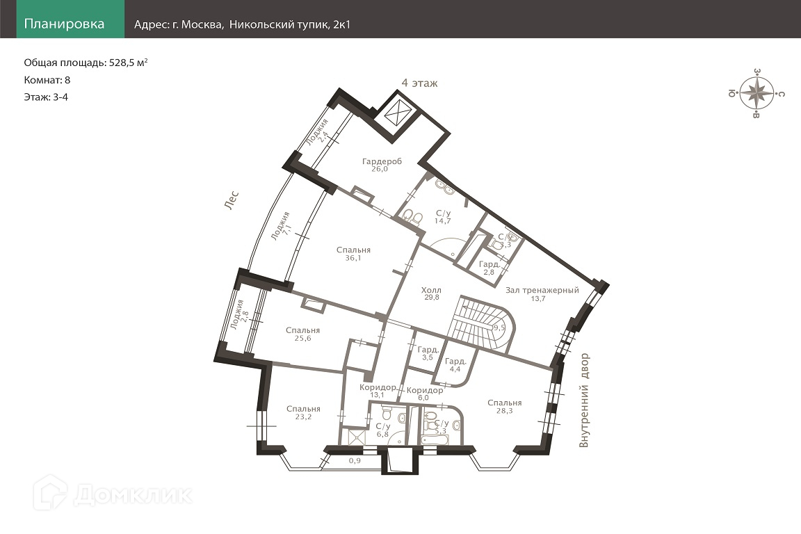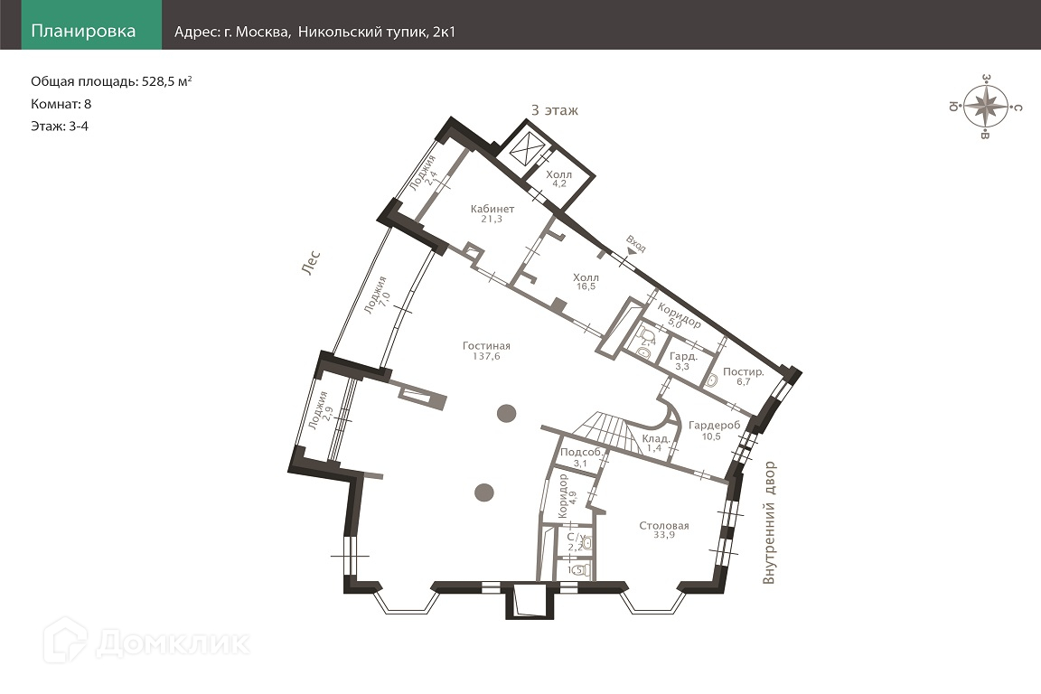 Многокомнатная квартира, 528.5 м2, этаж 4 / 22, на продажу в Москве, Никольский тупик, 2к1
