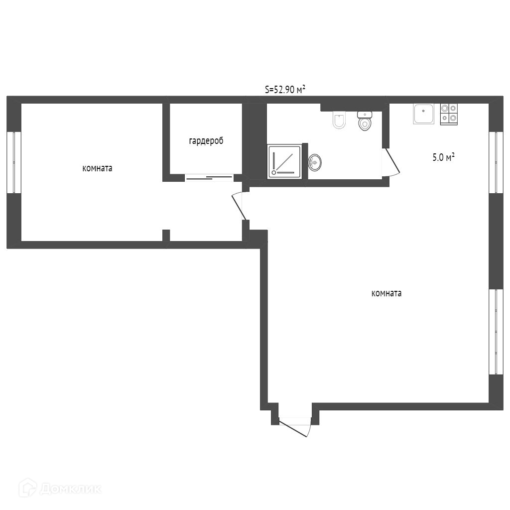Общая площадь 52,9 м