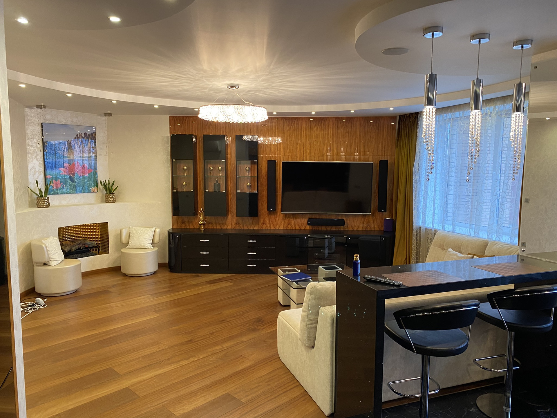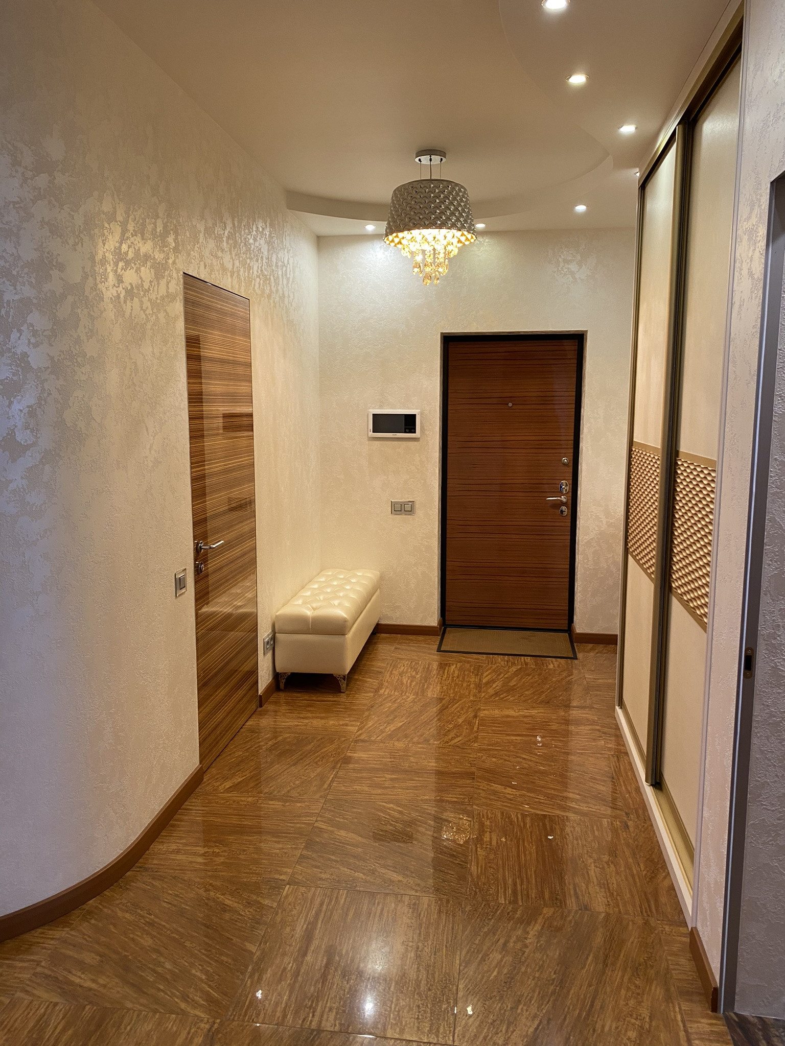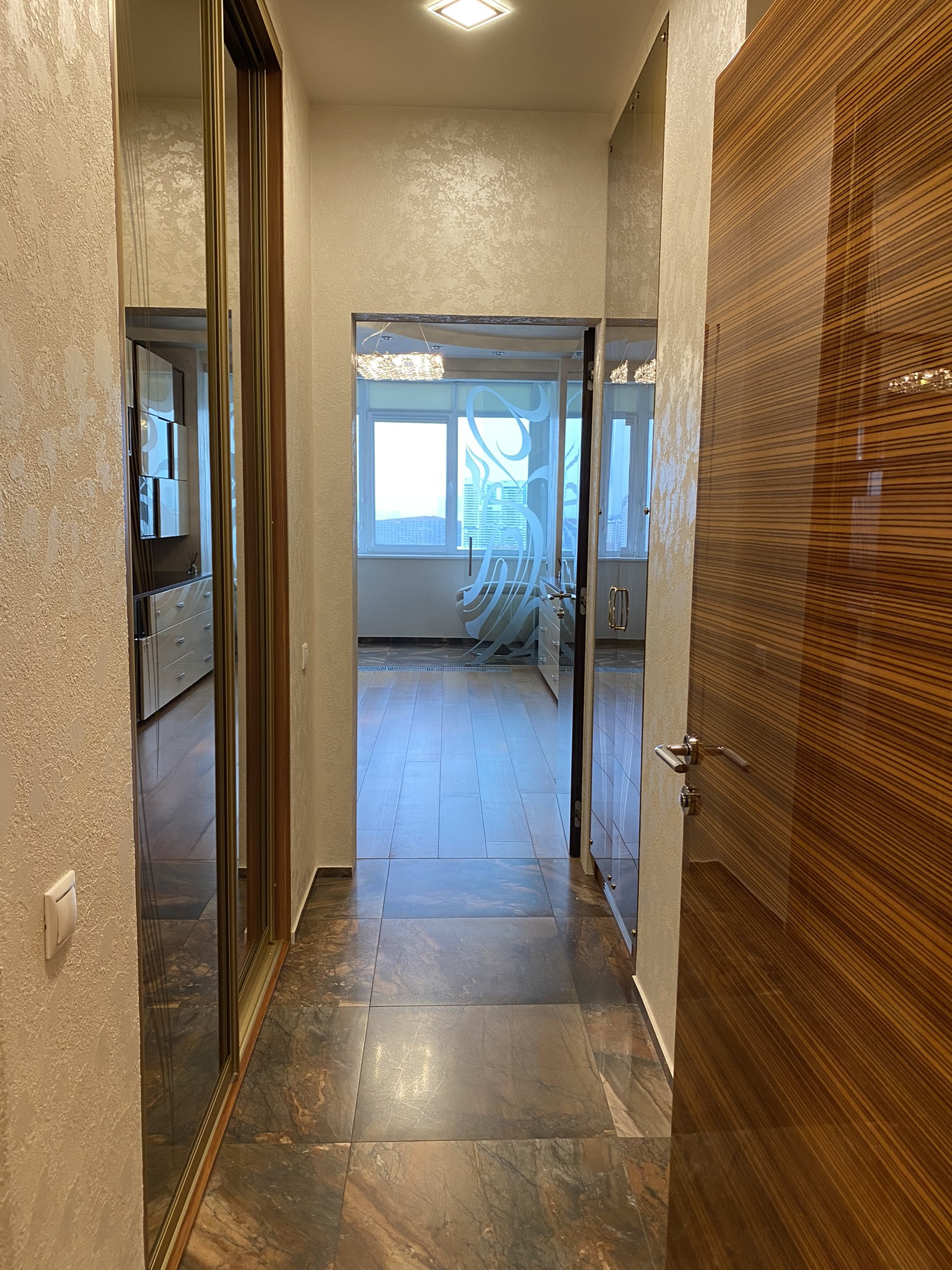 Три спальни со своими гардеробными, кухня-гостиная 36 кв.м., два санузла, постирочная,  просторный холл.  Панорамный вид из окон. Вторая линия домов - тихо. Квартира с хорошим-качественным ремонтом, практически никто не проживал, все очень функционально, много мест для хранения вещей. На этаже три квартиры. В доме круглосуточная охрана, есть подземный паркинг. Метро в шаговой доступности,  удобные транспортные развязки,  отличная локация. Район с очень развитой инфраструктурой,  много парков, есть все для комфортного проживания. Оперативные показы.