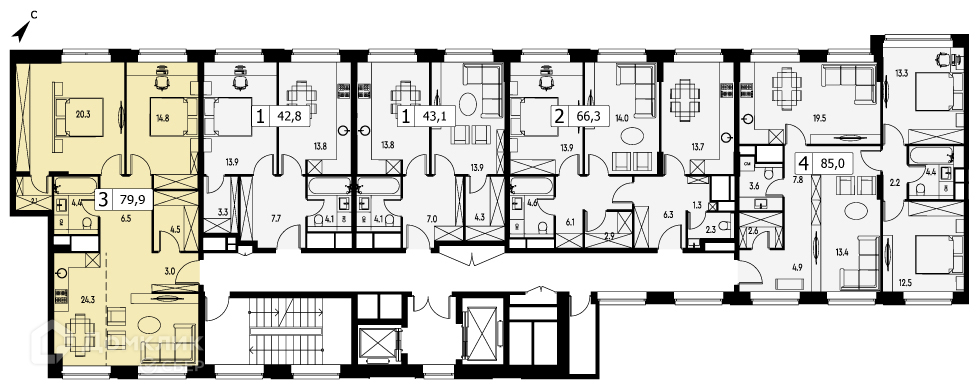 Общая площадь 79.9 м2