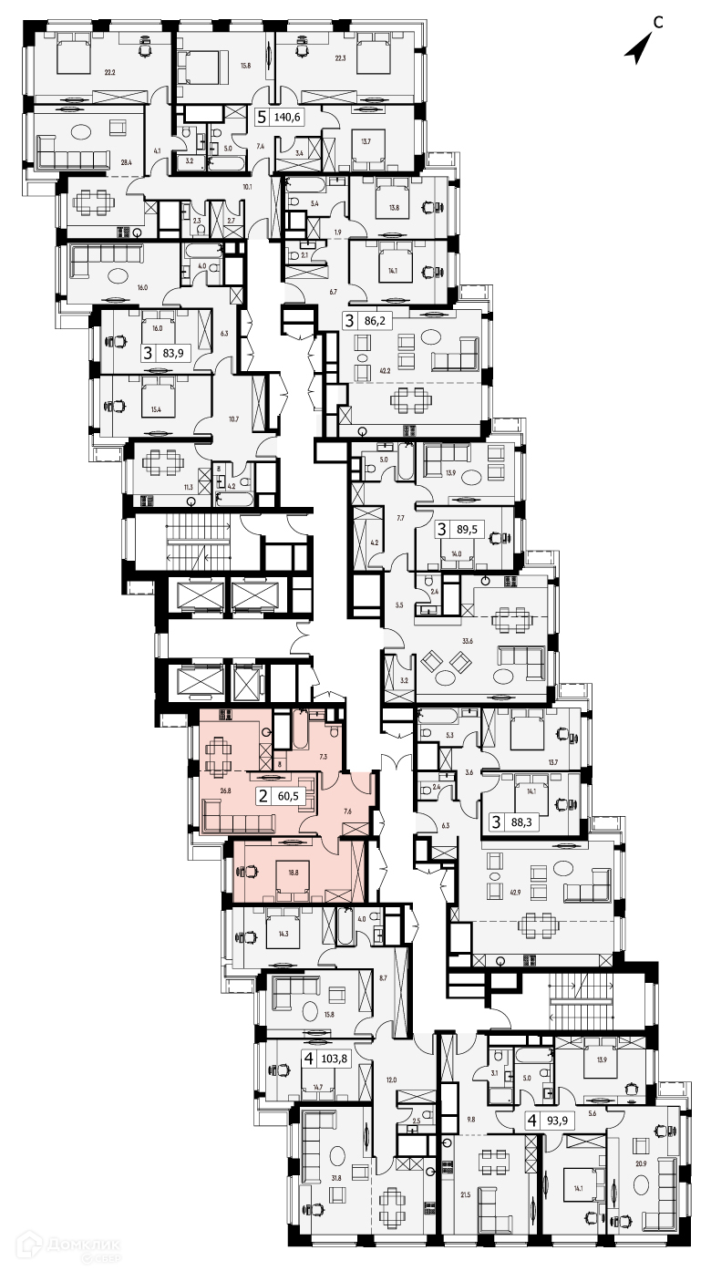 Общая площадь 88.3 м2