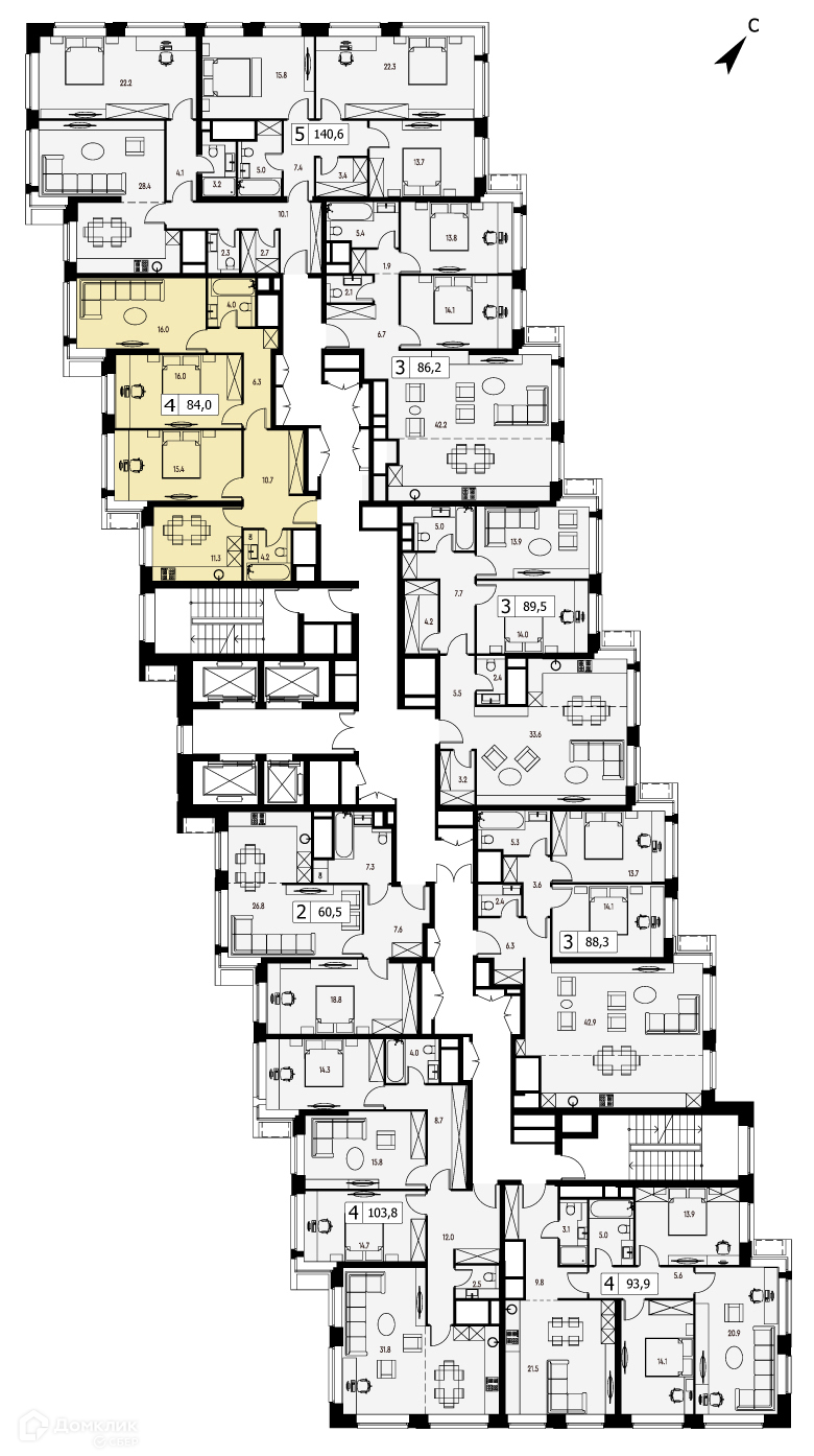 Общая площадь 84 м2