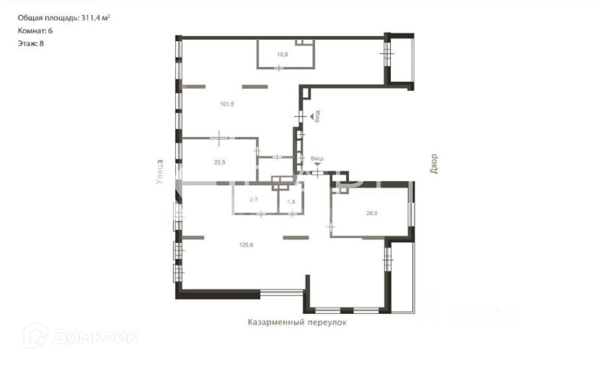 5-комнатная квартира, 306.5 м2, этаж 8 / 10, на продажу в Москве, Казарменный переулок, 3