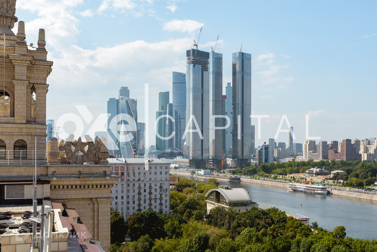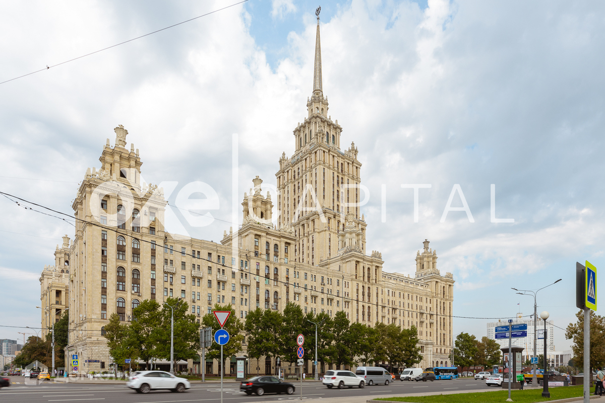 Лот №f31315 В исторической высотке Гостиница «Украина» предлагается в продажу уникальный трехуровневый пентхаус с дизайнерской отделкой. Роскошная отделка выполнена в стиле «Ар Деко». Использованы дорогие натуральные материалы, итальянский мрамор, оникс, натуральное дерево. Вся сантехника «Villeroy & Boch», окна «Schuco», экраны «Cavallini», полы канадский дуб, мебель от «Roberto Cavalli», и «Versace». Техника – «Miele», «Liebherr», «Bang Olufsen». Люстры и светильники «Baccarat». Сплит система «Daikin» Спланировано: первый уровень – просторный холл, гардеробная, большая гостиная с камином, кухня- столовая, хозяйская спальня со своей ванной комнатой и гардеробной, гостевой санузел. Гостевая спальня со своим санузлом, большой открытый балкон с панорамными видами на Москву. Второй уровень - кухня-гостиная, ванная комната, постирочная. Третий уровень - великолепный кабинет с окнами в пол по кругу и выходом на собственную террасу. Свой облик гостиница «Украина» получила благодаря группе архитекторов: академика архитектуры, президента Академии архитектуры СССР Аркадия Мордвинова, инженера-конструктора П. А. Красильникова, соавтора по проекту жилых корпусов В. Г. Калиша и соавтора по проекту стилобата — доктора архитектуры Вячеслава Олтаржевского, который изучал технику возведения небоскрёбов в Нью-Йорке и специализировался на проектировании и строительстве гостиниц. Здание характеризуется следующим композиционным решением: центральный корпус с башней со шпилем уравновешивают основательность и строгая геометрия флигелей. Угловые башенки и стилизованные под снопы пшеничных колосьев вазоны подчеркивают дворцовую архитектуру здания, а шпиль придаёт ему возвышенную строгость. В 2005 году полностью отреставрирован фасад здания, объявленного памятником истории и культуры. В марте 2007 года начались полномасштабные реконструкционные работы, в числе которых: ремонт и восстановление ценных деталей исторических интерьеров, модернизация инженерных систем и многое другое, включая работы на прилегающей территории.