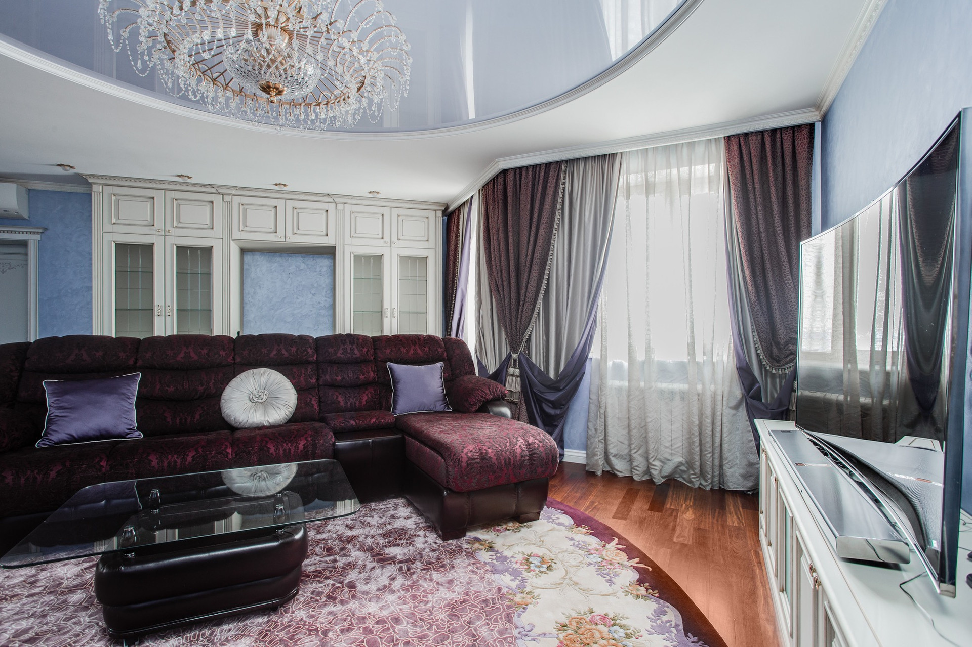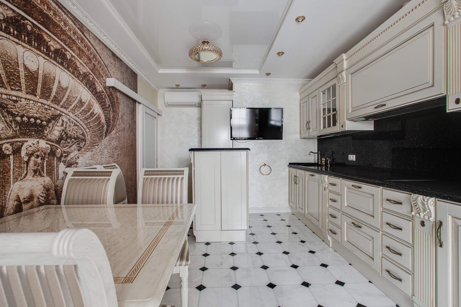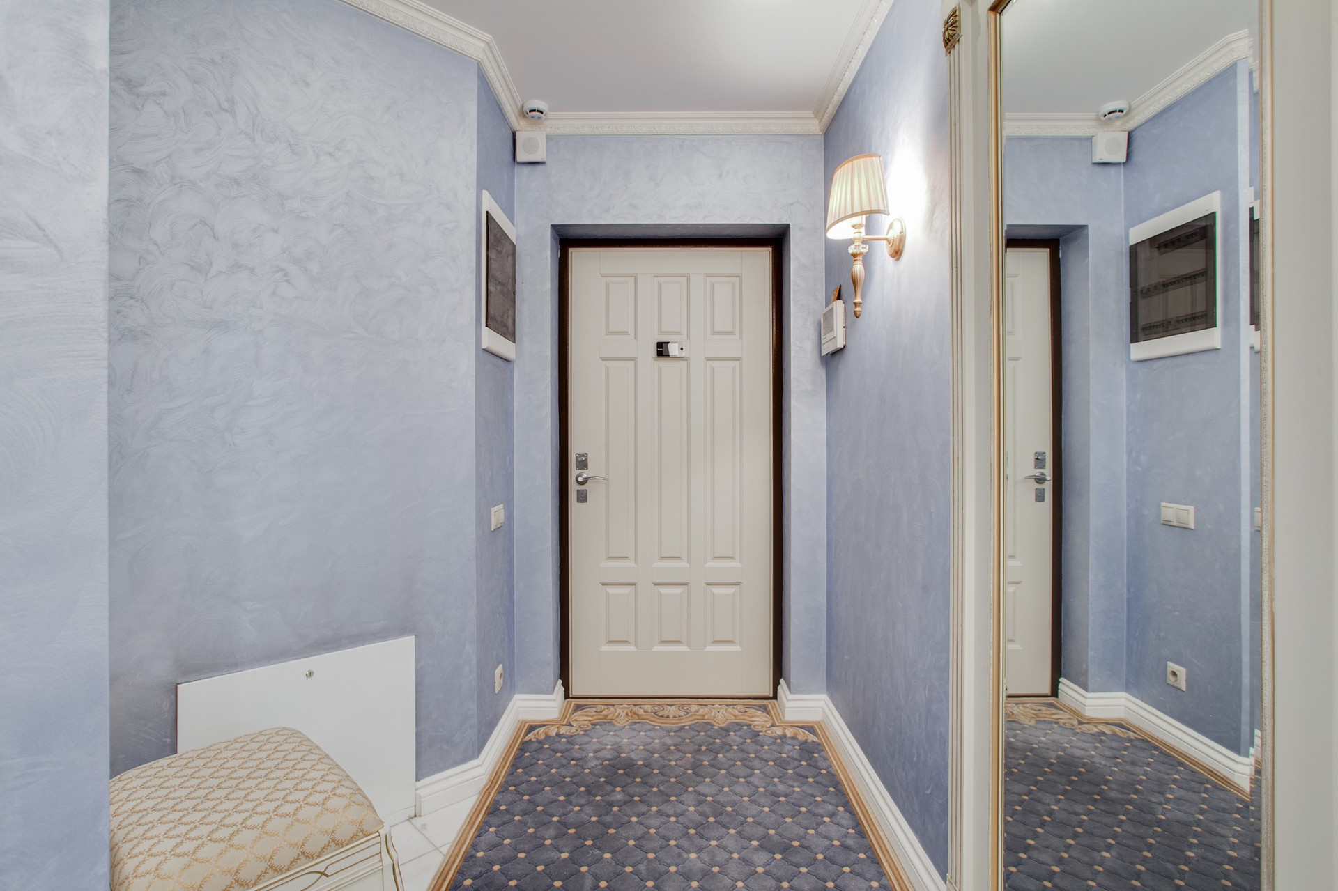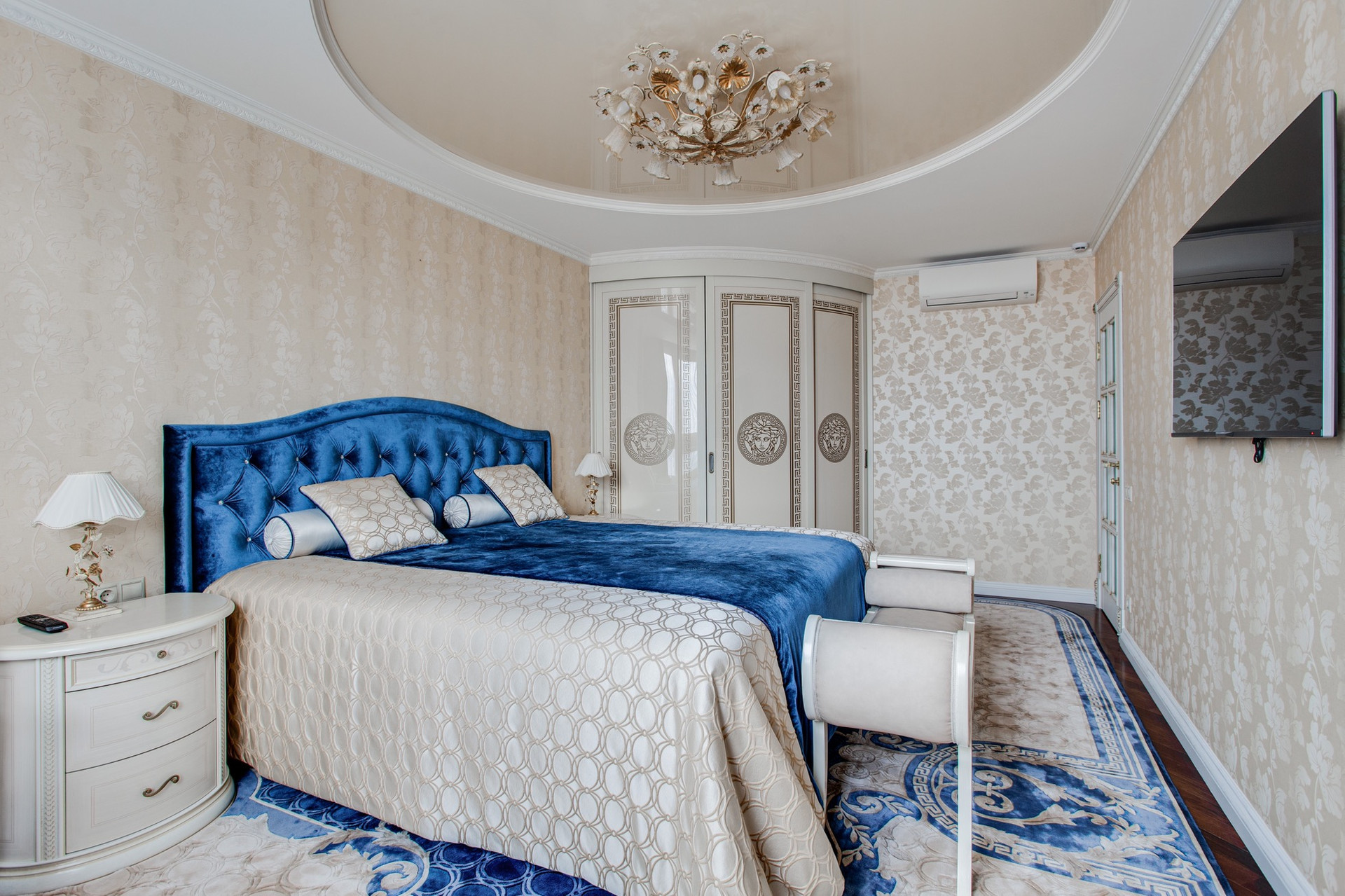 Полы паркет (сукупира), кухня, коридор и санузлы отделаны мраморной плиткой, итальянская сан. техника, два сан. узла. Кухня Scavolini, встроенная техника kuppersbusch, помимо полноценного холодильника отдельно установлена морозильная камера,  диван и кресло в гостиной mobel-zeit, кровать kingkoil. Все ковры ручной работы Home&House, делались на заказ, шерсть, шелк, объемная стрижка. На кухне и в санузлах теплые полы. Установлен водонагреватель на случай отключения горячей воды. Во всех комнатах установлены кондиционеры daikin.