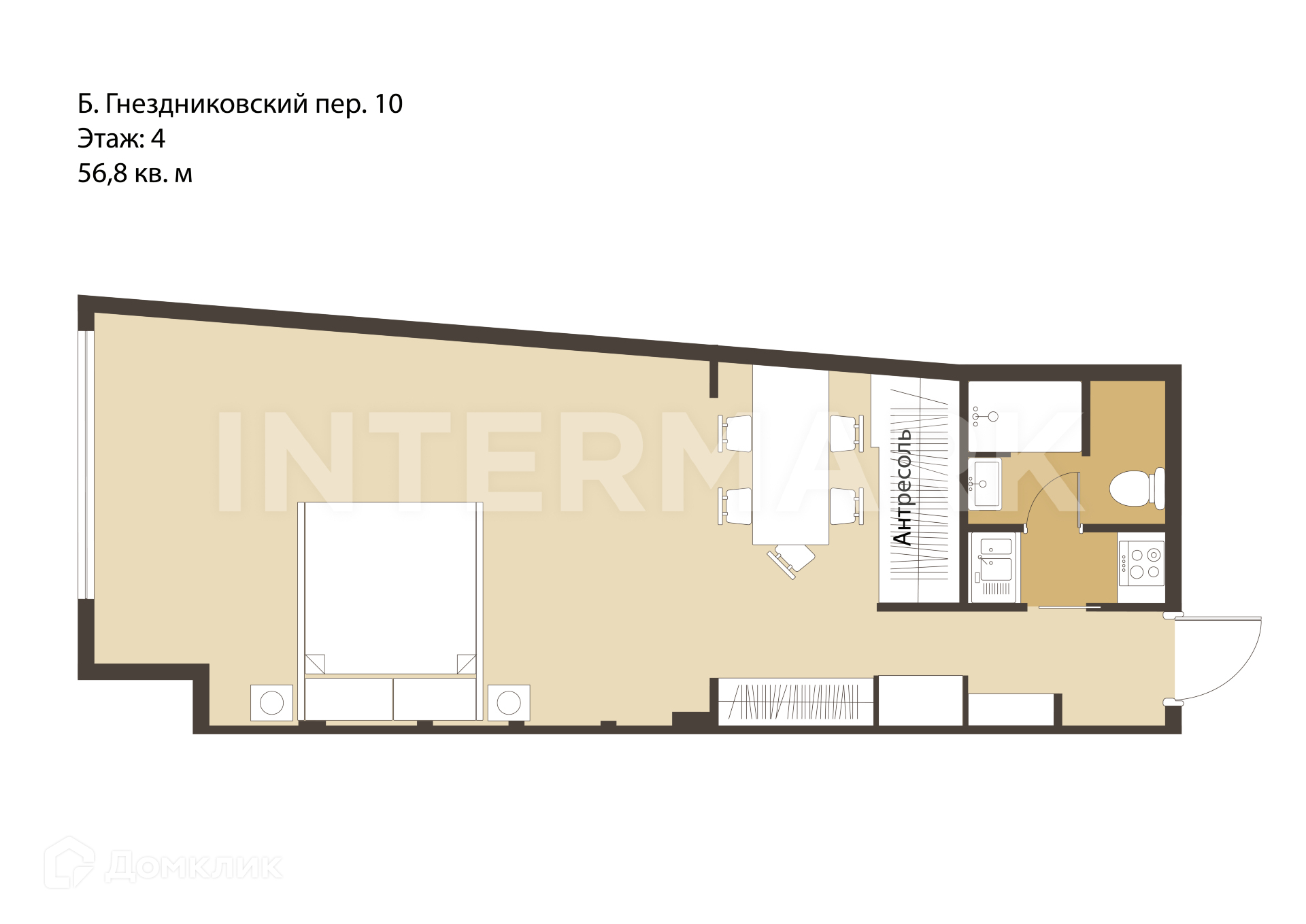 2-комнатная квартира, 56 м2, этаж 4 / 10, на продажу в Москве, Большой Гнездниковский переулок, 10