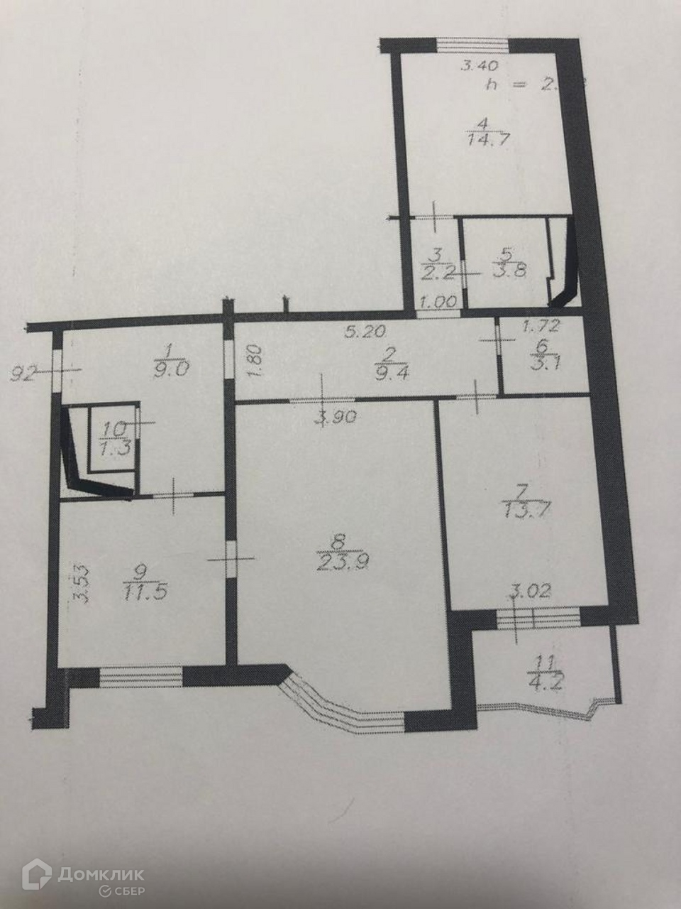 Высота потолков 2.8 м