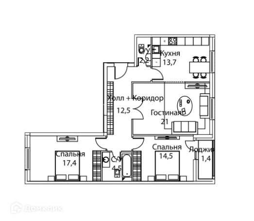 Общая площадь 84.7 м2
