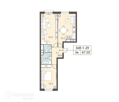 Общая площадь 67.5 м2