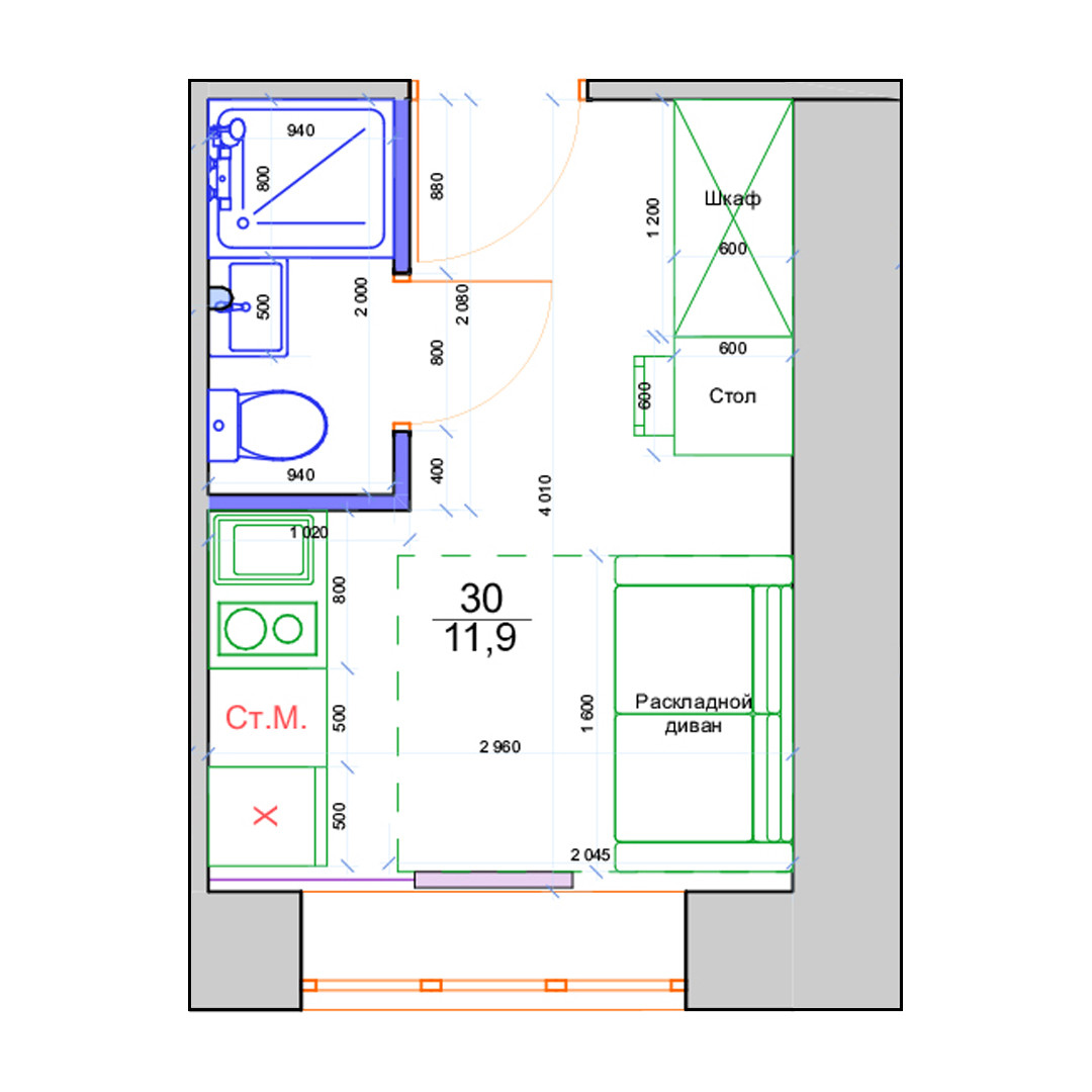 Общая площадь 11.9 м2