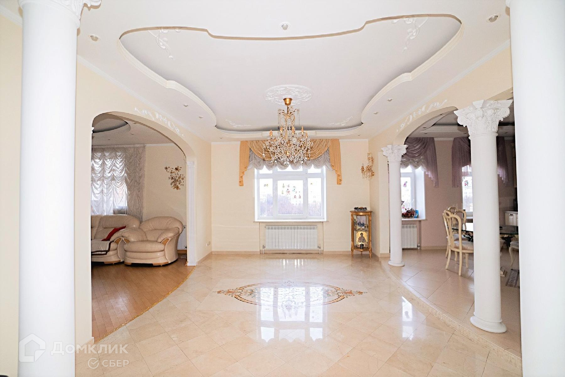 Квартира со вкусом декорирована и обставлена дорогой мебелью. Мебель и предметы интерьера заказывались в Италии. Полы с подогревом по всей квартире, итальянский штучный паркет с инкрустацией, испанский мрамор с мозаичными панно, дорогая стильная плитка высшего класса. Высококлассная импортная сантехника и бытовая техника .Встроенная итальянская кухня из массива, полностью укомплектована техникой и оборудованием. Установлена система кондиционирования. Люстры и светильники - заказной хрусталь из Италии. Инженерные системы: электроснабжение, разводка труб, отопление, выполнены по высшему разряду. Все оборудование, отделка и мебель в отличном состоянии и прослужат еще долгие годы.
